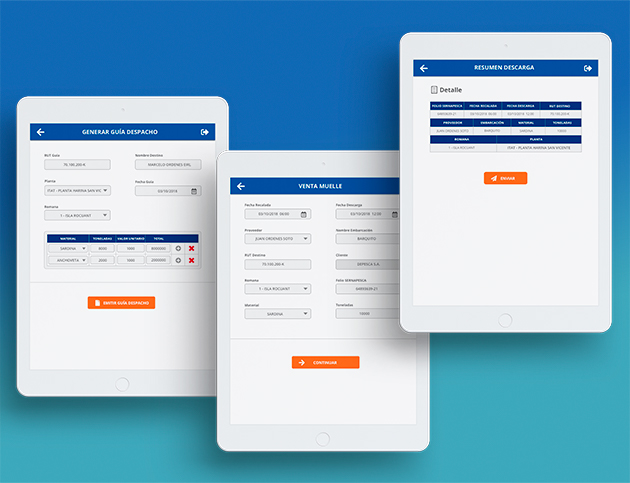 Entre 2018 y 2019 soy parte del equipo que implementa una app propietaria de una pesquera para la gestión de descarga en muelle.