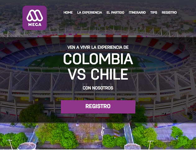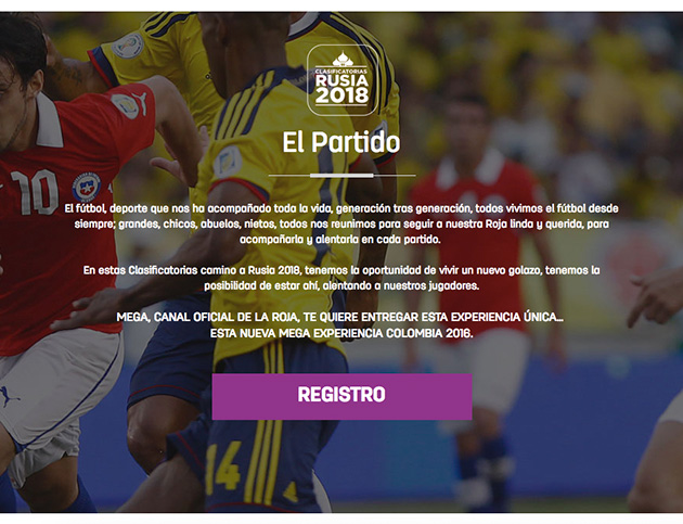 Para el partido clasificatorio para Rusia 201 8de Chile contra Colombia en Barranquilla, diseñé esta landing page, la cual se enfocaba en registrar a inversionistas y anunciantes del canal Mega a ver dicho partido.